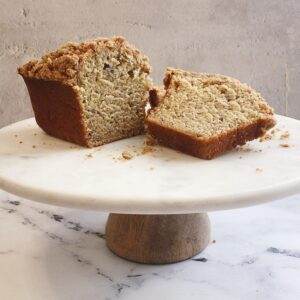 Can we talk about this crumble topping for a second? It’s very close to an apple crisp topping. It’s buttery and a bit crunchy. All the oats, sugars and cinnamon work together to give this simple sweet bread an extra special element. You could also add some chopped nuts like pecans or walnuts.