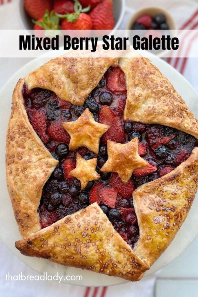 - To use the leftover dough scraps, use a small star cookie cutter to cut out shapes. After the galette comes out of the oven and is cooling, brush the cut out stars with egg wash, bake for 10-15 minutes, until golden brown. Arrange the stars on the center of the galette, over the berries, for an extra patriotic look! If you still have extra dough scraps, you can press them into a ball, wrap in plastic wrap and freeze for later use.